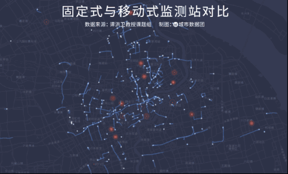 (图:红圈为固定式监测站,蓝色则为移动式)