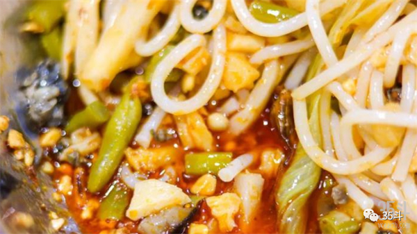 袋装螺蛳粉里面的干米粉一般都是65%的大米加上35%的玉米淀粉,通过磨浆、挤压、搅拌、制粉、清洗烘干后,最后才能包装入袋。螺蛳粉里的米粉吃起来软韧爽口,区别于市面上的普通米粉,常常供不应求。