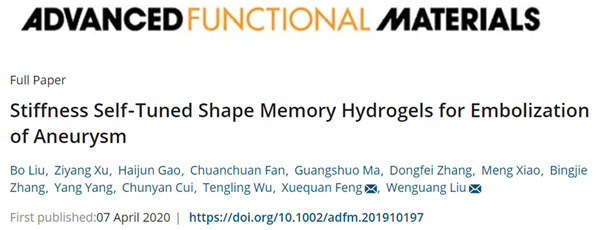 《AFM》:形状记忆水凝胶用于动脉瘤的栓塞治疗