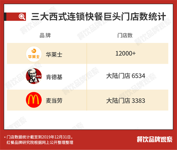 截至2019年年底,肯德基在中国大陆的门店数为6534家,而麦当劳的门店数为3383家。也就是说,知名度比华莱士大得多的肯德基、麦当劳,两家的大陆门店加一起还没有它多……