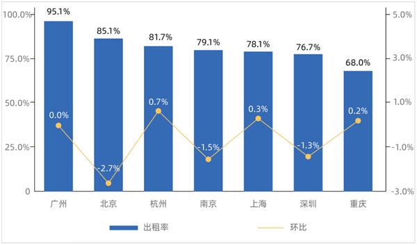 相比而言,南京、上海、深圳、重庆的写字楼出租率都没有超过80%,这意味着它们的空置率都超过20%。