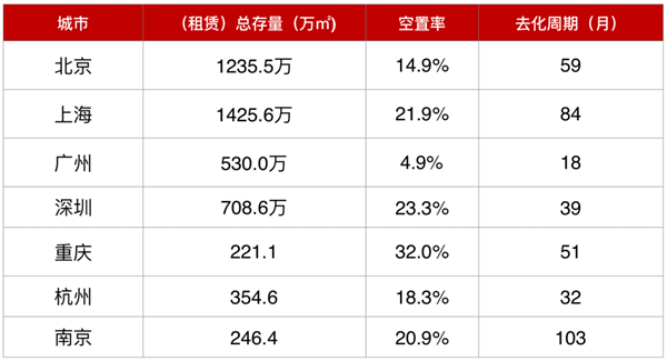 表:截至2020年二季度重点监测城市租赁空置存量、空置率和去化周期