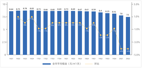 受疫情影响,一线城市写字楼平均租金二季度集体下跌,北上深平均租金水平创三年最低。