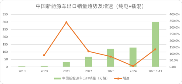 图:中国新能源车出口销量趋势及增速,来源:西部证券