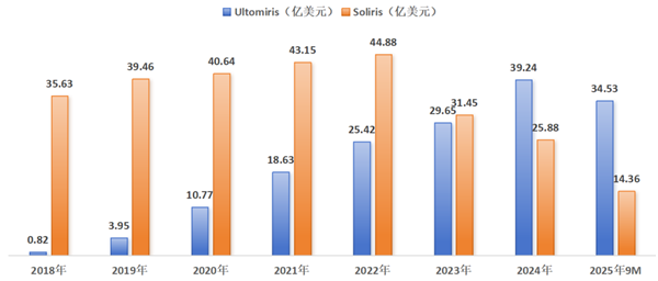 当前,C5 抑制剂赛道正经历一场深刻的迭代革命,核心逻辑正从 “短效” 向 “长效”、从 “静脉” 向 “皮下” 演进。这一趋势在市场数据中已得到明确验证:2024 年,瑞利珠单抗的销售额已全面超越依库珠单抗,正式登顶全球最畅销 C5 抑制剂。这一里程碑式的超越,本质上是临床需求对更高依从性的投票,更长的给药间隔大幅降低了患者的治疗负担。