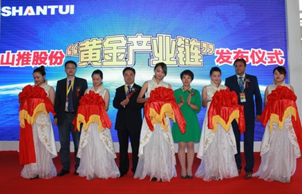 “质精致新,筑梦中国”。9月23日,第十三届中国(北京)国际工程机械、建材机械及矿山机械展览与技术交流会(BICES 2015)还在如火如荼地进行着,下午14时许,山推工程机械“黄金产业链”展示发布会在展台上隆重举行。