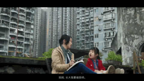 闲暇之余,娘俩在重庆的天台,面对高楼大厦,钢筋水泥,谈论未来的希望。