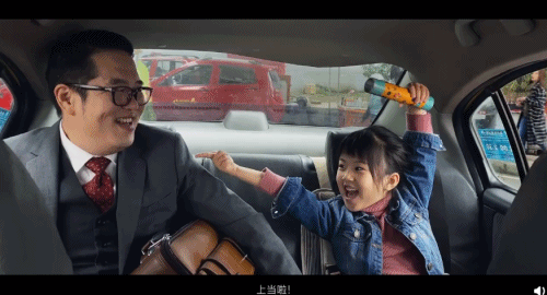 当人家一脸懵圈的时候,她对着乘客叔叔说“上当啦!”当乘客叔叔下车时说:”女儿再见咯!“她欢快地答道:”爸爸再见!“